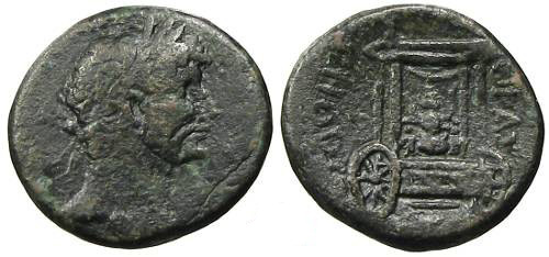 Laureate head of Hadrian right / Cart of Astarte with Sacred Stone
